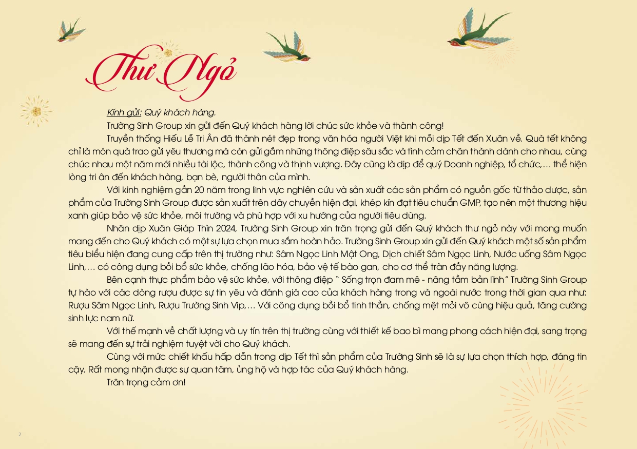 Hãy để hộp quà tết "Gửi trao tâm ý – vẹn tình yêu thương" của Trường Sinh Group trở thành ngôn ngữ của tình thân và sự quan tâm trong mỗi gia đình, mỗi người bạn. Trường Sinh Group tin rằng, những điều tốt đẹp nhất sẽ đến với bạn và người thân trong năm mới. Chúc mừng năm mới, tràn đầy yêu thương và hạnh phúc!