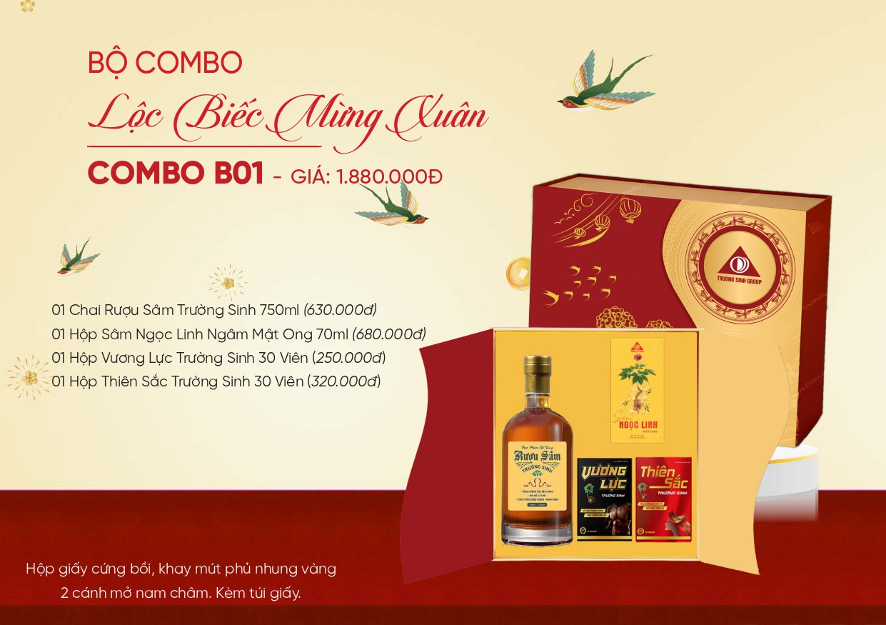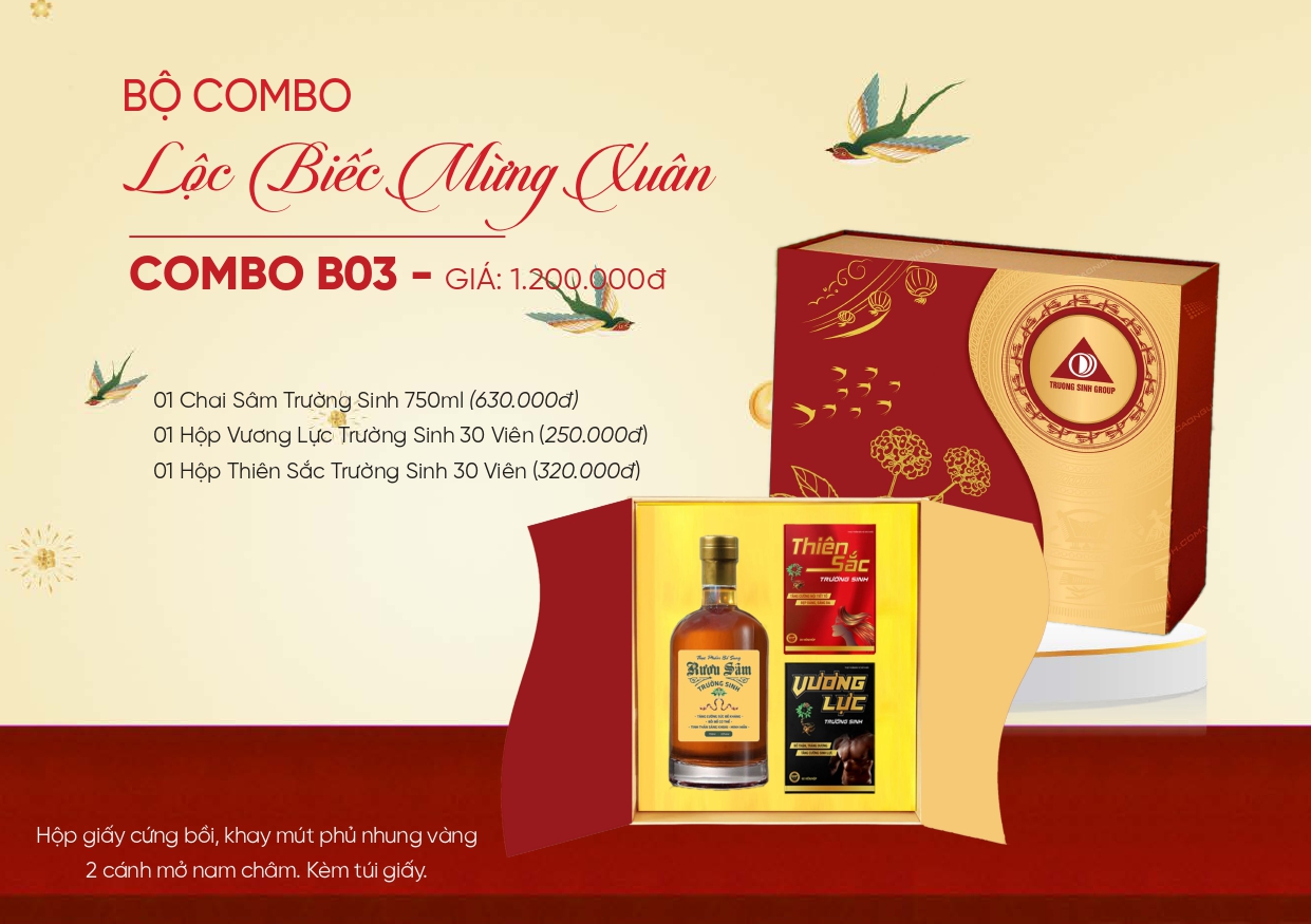 Để đáp ứng đa dạng nhu cầu của khách hàng, Trường Sinh Group tự hào giới thiệu bộ sưu tập "Gửi trao tâm ý - vẹn tình yêu thương" với những hộp quà tết được thiết kế độc đáo, bao gồm: “Gói trọn yêu thương”, “Khai xuân đón lộc”, “Lộc biếc mừng xuân”, “Song tửu Trường Sinh”, “Nhất long tửu”… Mỗi hộp quà mang đến không chỉ sự sang trọng, chất lượng mà còn là ý nghĩa sâu sắc về tình yêu thương và hạnh phúc.