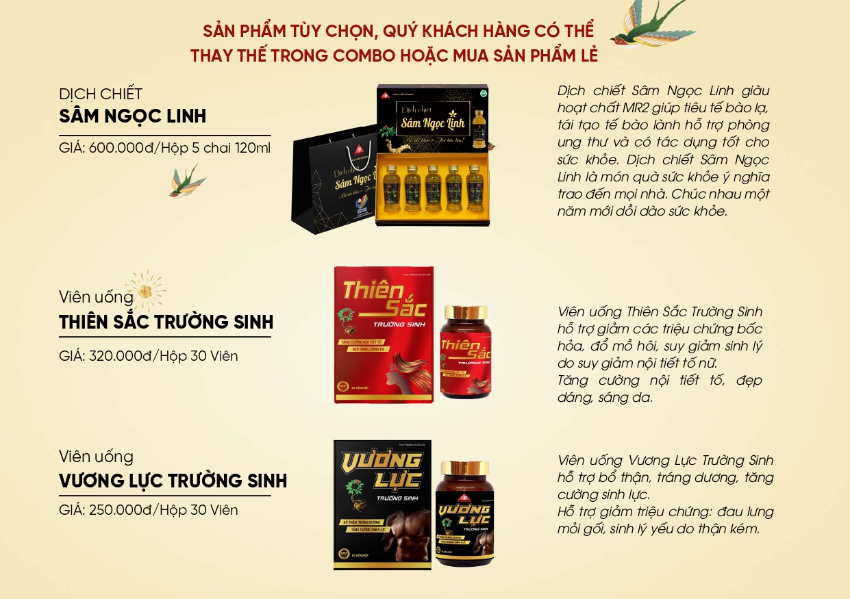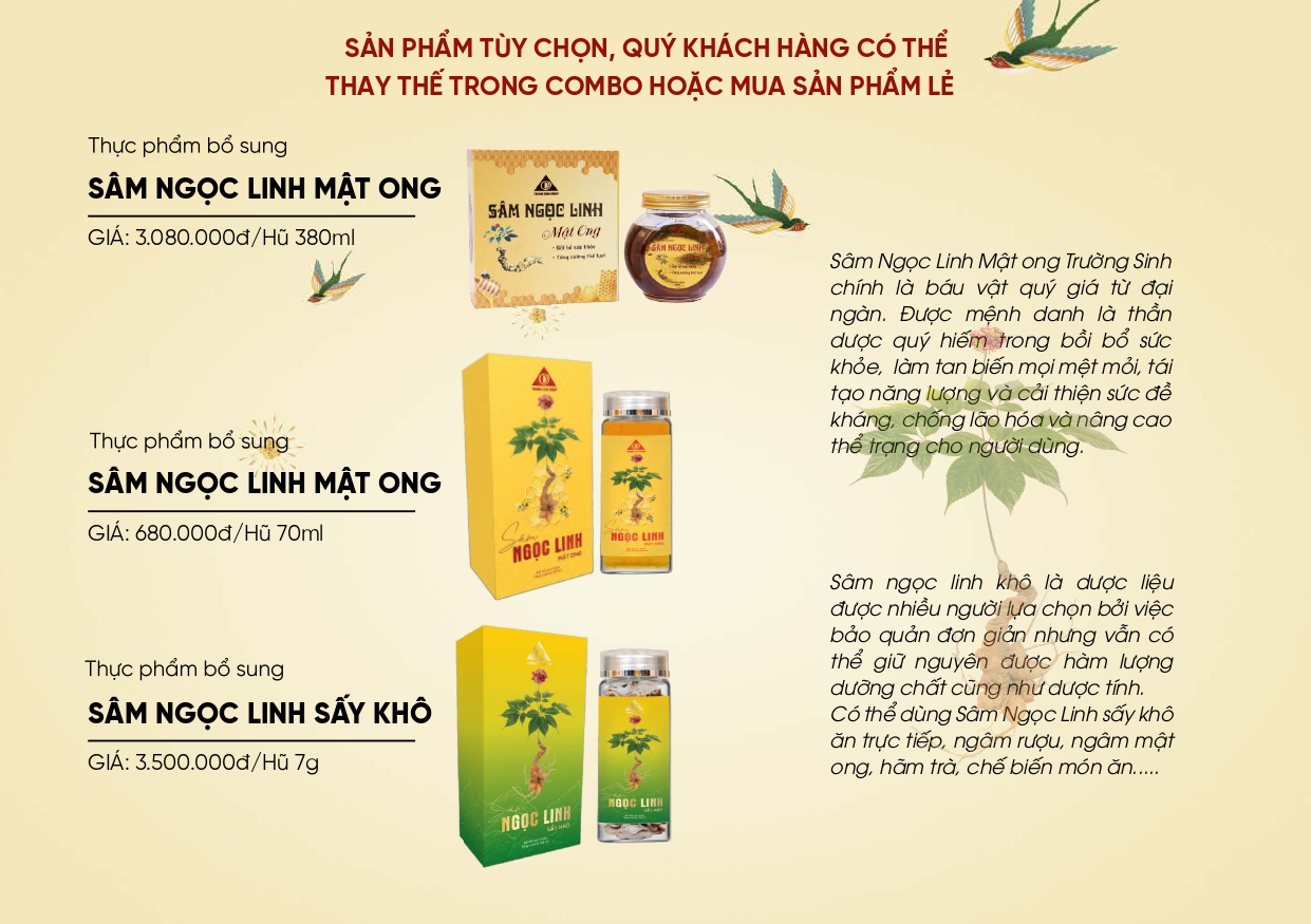 Hộp quà tết từ Sâm Ngọc Linh không chỉ là sự kết hợp hài hòa của các sản phẩm chất lượng cao mà còn là cách để truyền đạt tình cảm yêu thương. Các sản phẩm trong combo quà tết đều có thành phần là Sâm Ngọc Linh - là loại sâm được mệnh danh là “Sâm quốc bảo của Việt Nam”, có chứa hàm lượng “Saponin” cao nhất trong tất cả các loại sâm và đặc biệt là có thành phần “Saponin MR2” là hoạt chất duy nhất chỉ có trong Sâm Ngọc Linh có tác dụng tiêu tế bào lạ, tái tạo tế bào lành, hạn chế khối u phát triển, phòng chống các mầm mống gây ung thư.